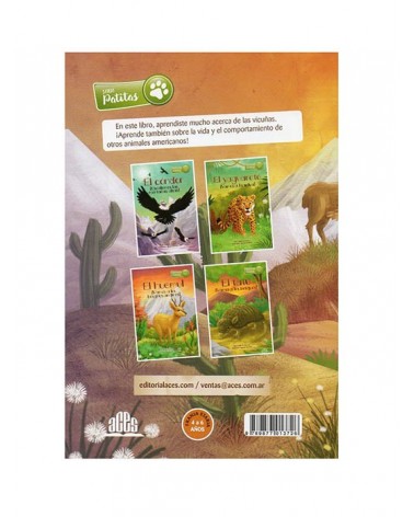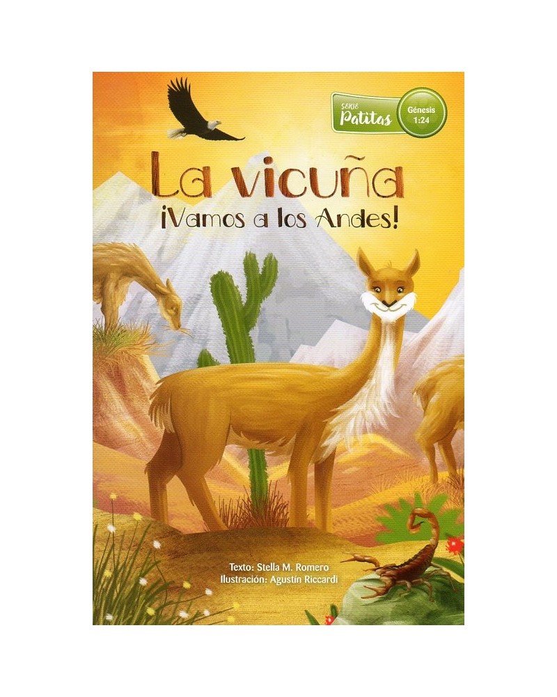 Libro ilustrado totalmente a color, compuesto por una base bíblica, la descripción del animal, una historia y actividades para el lector. Además de dar a conocer a los animales, el objetivo es crear conciencia de cuidarlos porque somos mayordomos de nuestro planeta. La vicuña: animal nacional de Perú.