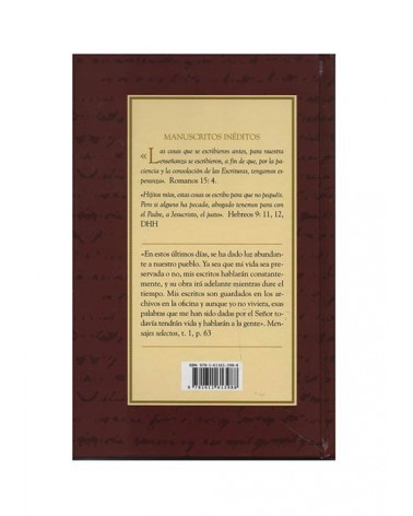 Por primera vez en español, se comienza a publicar la colección de los Manuscritos inéditos de Elena G. White. Cada tomo reúne material previamente inédito en forma de libro, procedente de los archivos de manuscritos y cartas de Elena G. White.